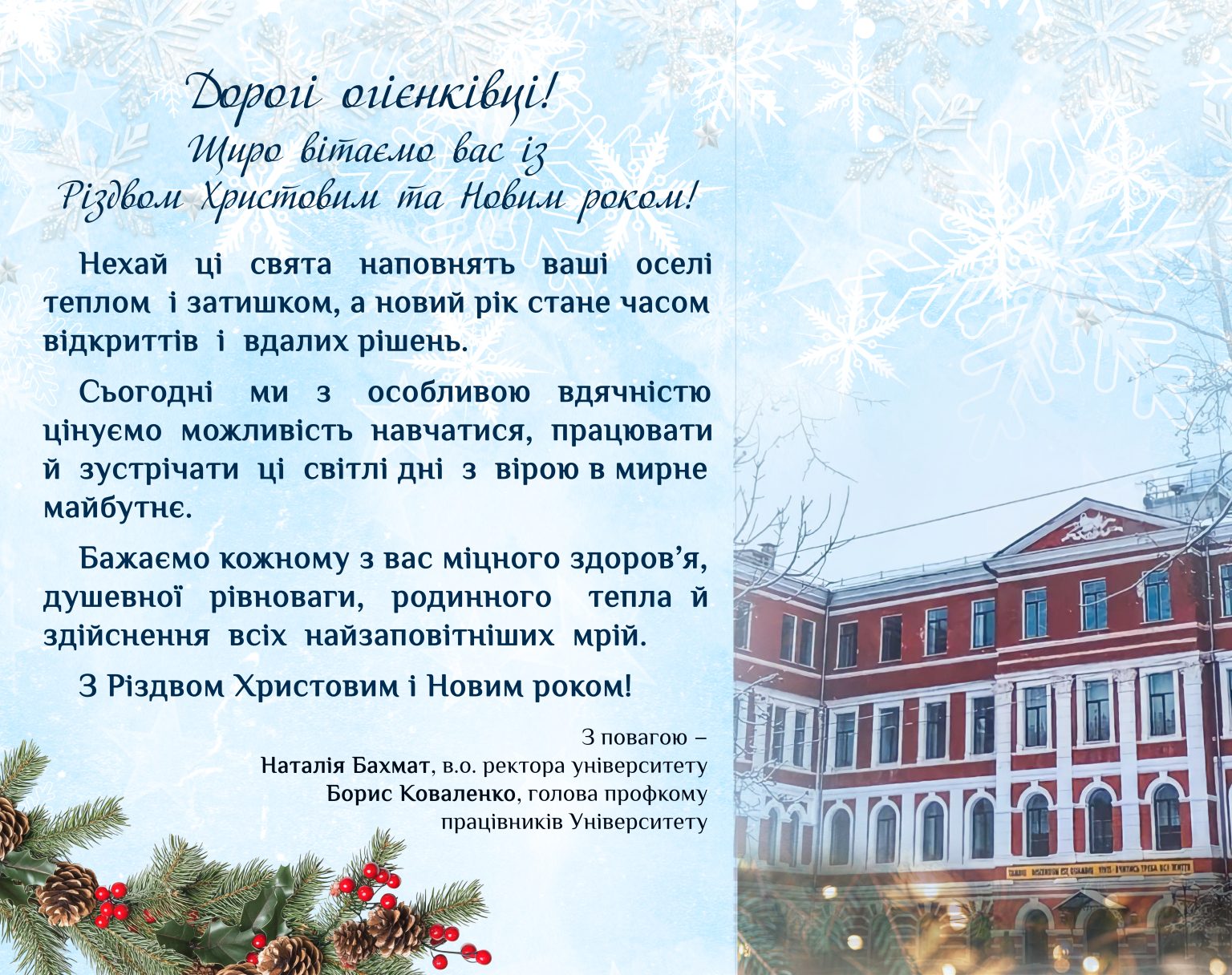Привітання з Різдвом Христовим і Новим роком від ректорату та профкому працівників К-ПНУ
