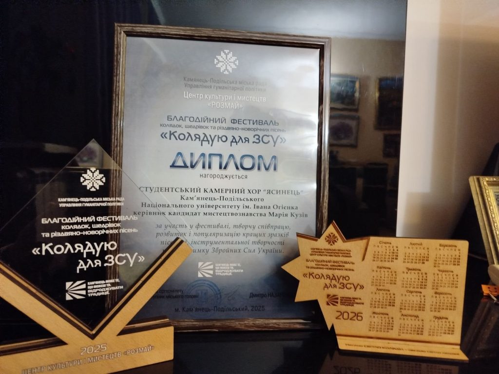 Студентський камерний хор “ЯСИНЕЦЬ” (художній керівник і диригент Марія Кузів) взяв участь у благодійному фестивалі колядок, щедрівок та різдвяно-новорічних пісень “Колядую для ЗСУ”, організаторами якого виступили Кам’янець-Подільська міська рада, Управління гуманітарної політики та Центр культури і мистецтв “Розмай”.