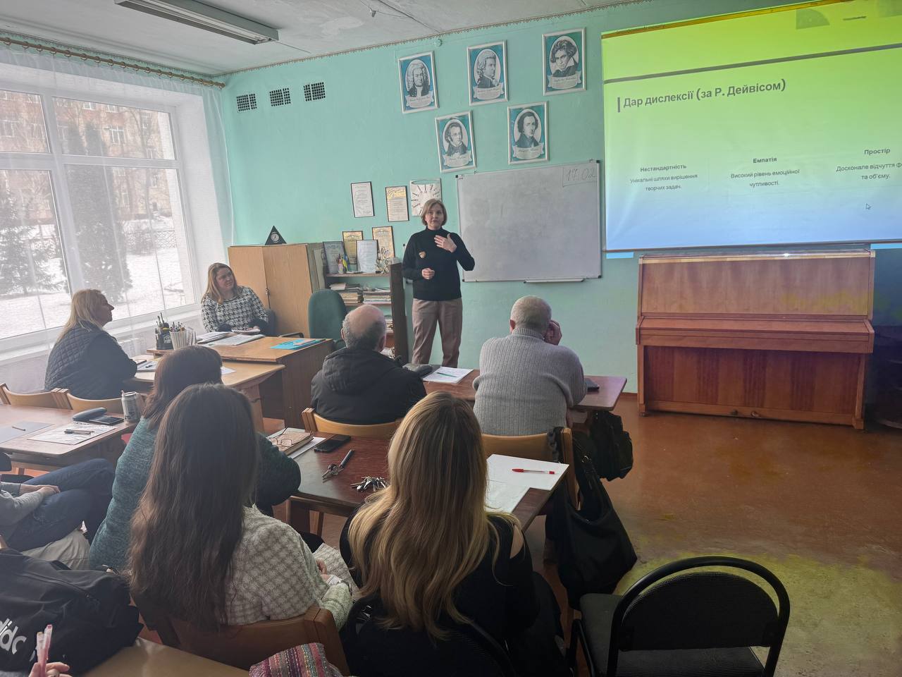 У межах лекторію кандидат педагогічних наук, доцент кафедри логопедії та спеціальних методик Оксана Константинів презентувала тему «Дислексія у навчанні мистецьких дисциплін та шляхи вирішення проблеми». У своїй доповіді вона зосередила увагу на особливостях прояву дислексії під час опанування мистецьких предметів, окреслила труднощі, із якими можуть стикатися учні, та запропонувала ефективні стратегії підтримки. Особливий інтерес викликали практичні поради щодо адаптації навчального матеріалу.